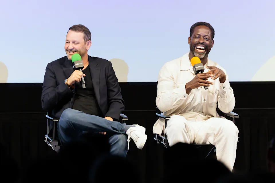 Dan Fogelman, Sterling K. Brown no Indiewire e Disney Present: Pass the Remote 2025 para a exibição e painel de “Paradise” realizado no Vdiots em 12 de agosto de 2025 em Los Angeles, Califórnia. (Foto de Rich Polk/IndieWire via Getty Images)