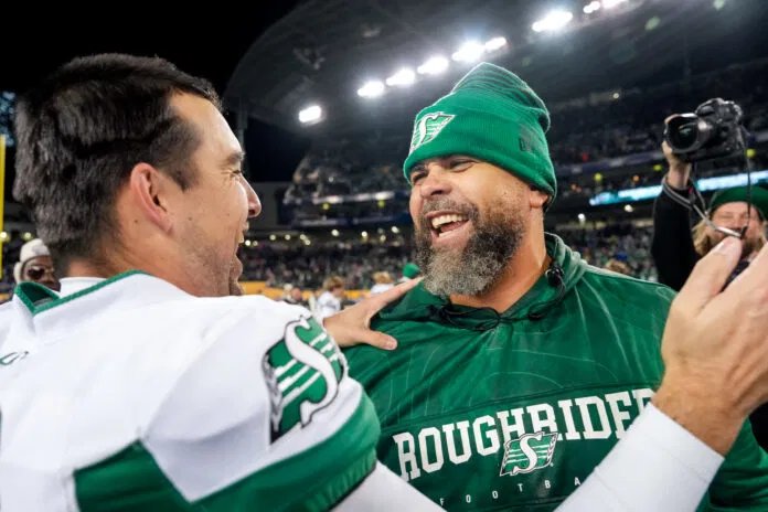 Os Saskatchewan Roughriders terminaram em primeiro lugar na classificação da Divisão Oeste em 2025 com um recorde de 12-6, terminando em primeiro na Divisão Oeste pela primeira vez desde 2019. A equipe derrotou o Montreal Alouettes na 112ª Grey Cup em Winnipeg, marcando o primeiro campeonato da equipe em 12 anos. Trevor Harris foi 11-5 como titular, arremessando 4.549 jardas, 24 touchdowns e 11 interceptações.