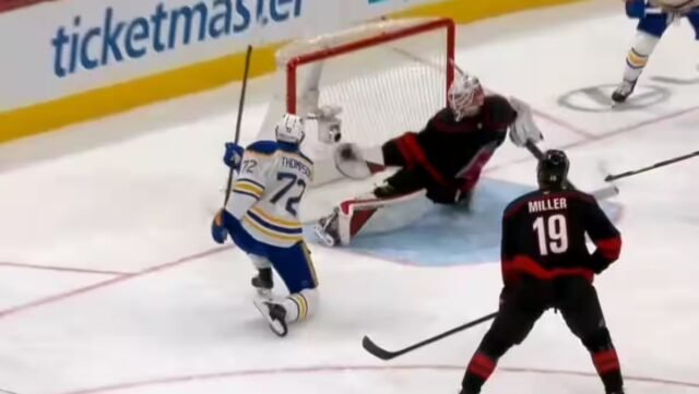 Le portier de 27 ans a stoppé with sa mitaine un tir à bout portant de Tage Thompson à embocadura de son filet, privant ainsi l’as marqueur des Sabres de Buffalo de son 26e mas de la campagne. A reação do número 72 não foi colocada em nenhuma interpretação. Para ver na sequência ci-dessus.