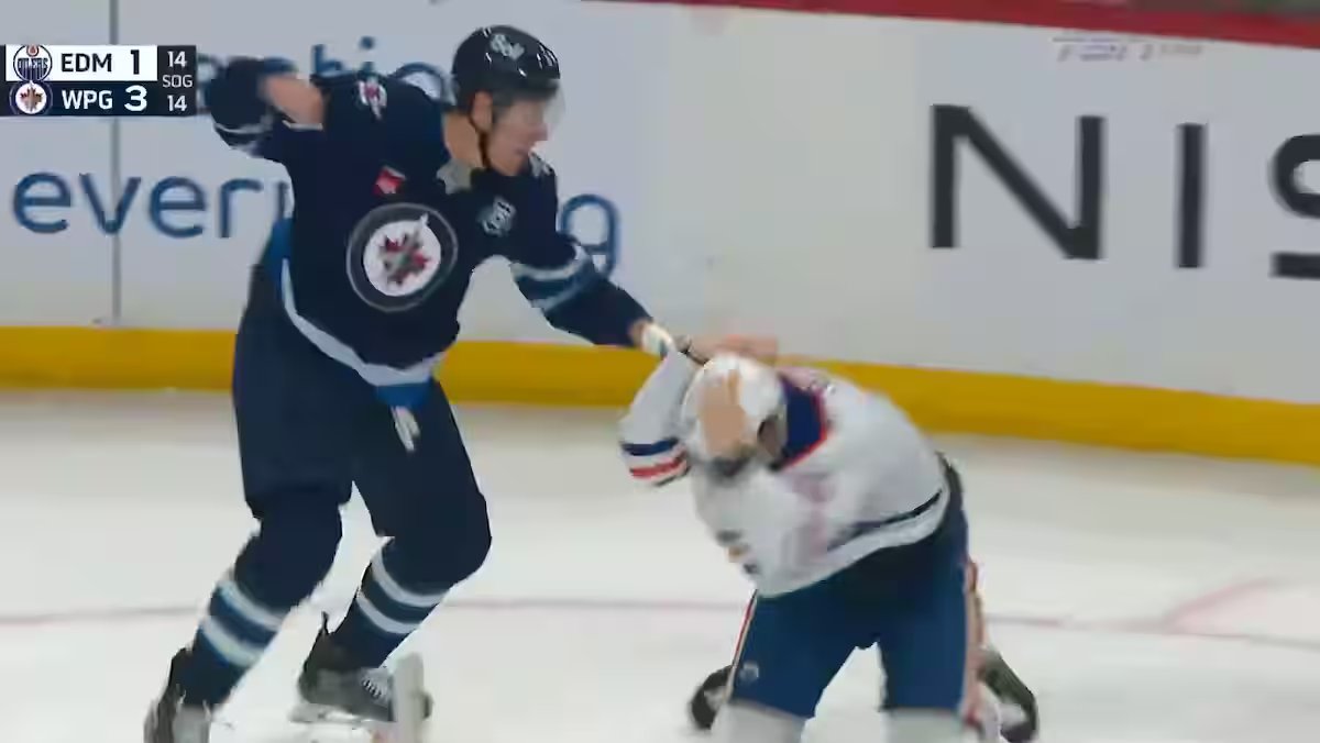 A etapa de retorno foi contra os Jets de Winnipeg e a escolha de provocar o gigante Logan Stanley. Na defesa, Frederic reussi to toucher deux fois son rival in combat singulier, mas il a mis l’ours en colère.