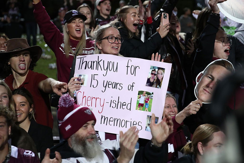 Os fãs ergueram cartazes proclamando “Uma vez Sea Eagle, sempre Sea Eagle” e Cherry-Evans acenou para a multidão enquanto era elogiado por eles.