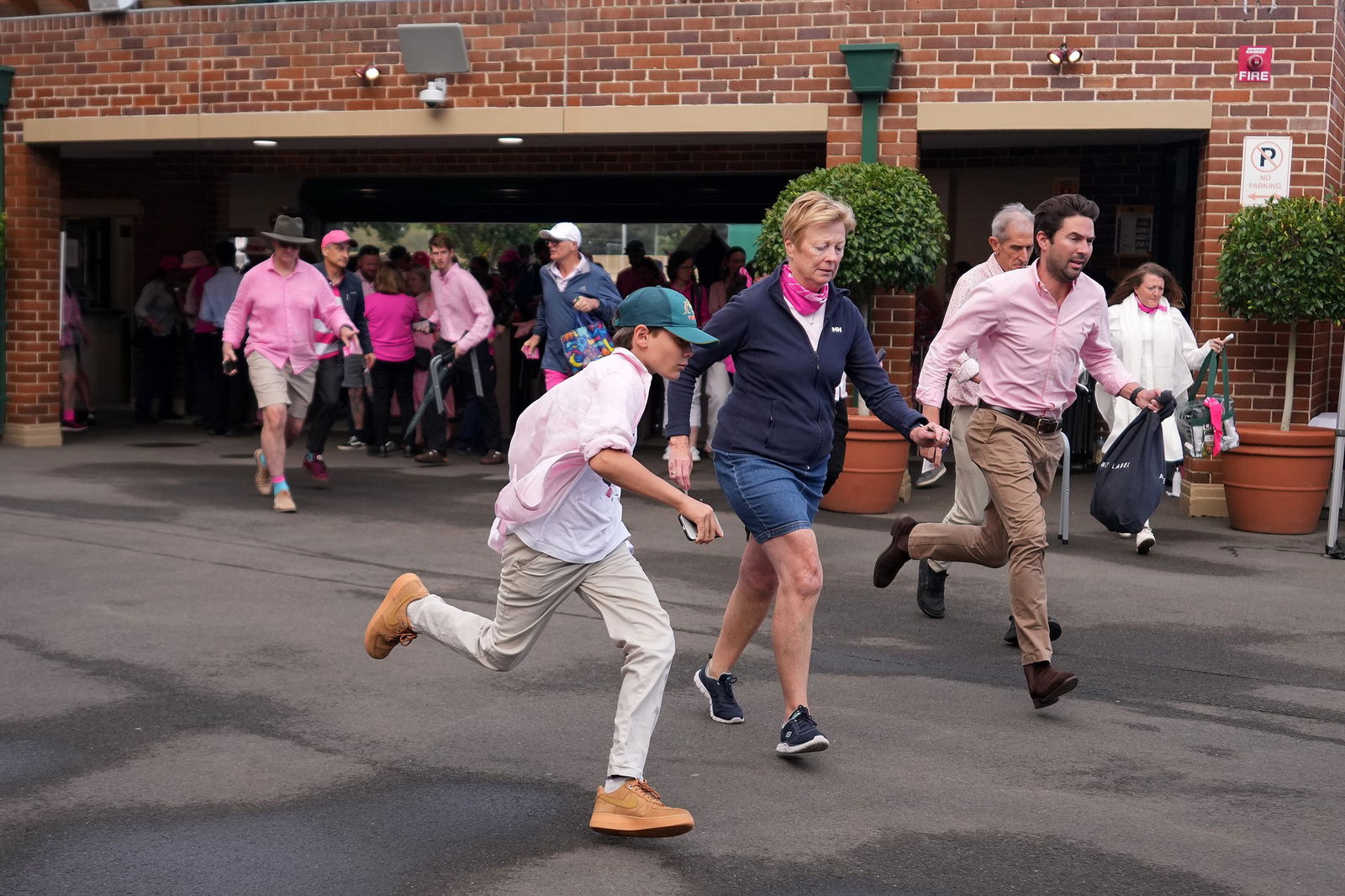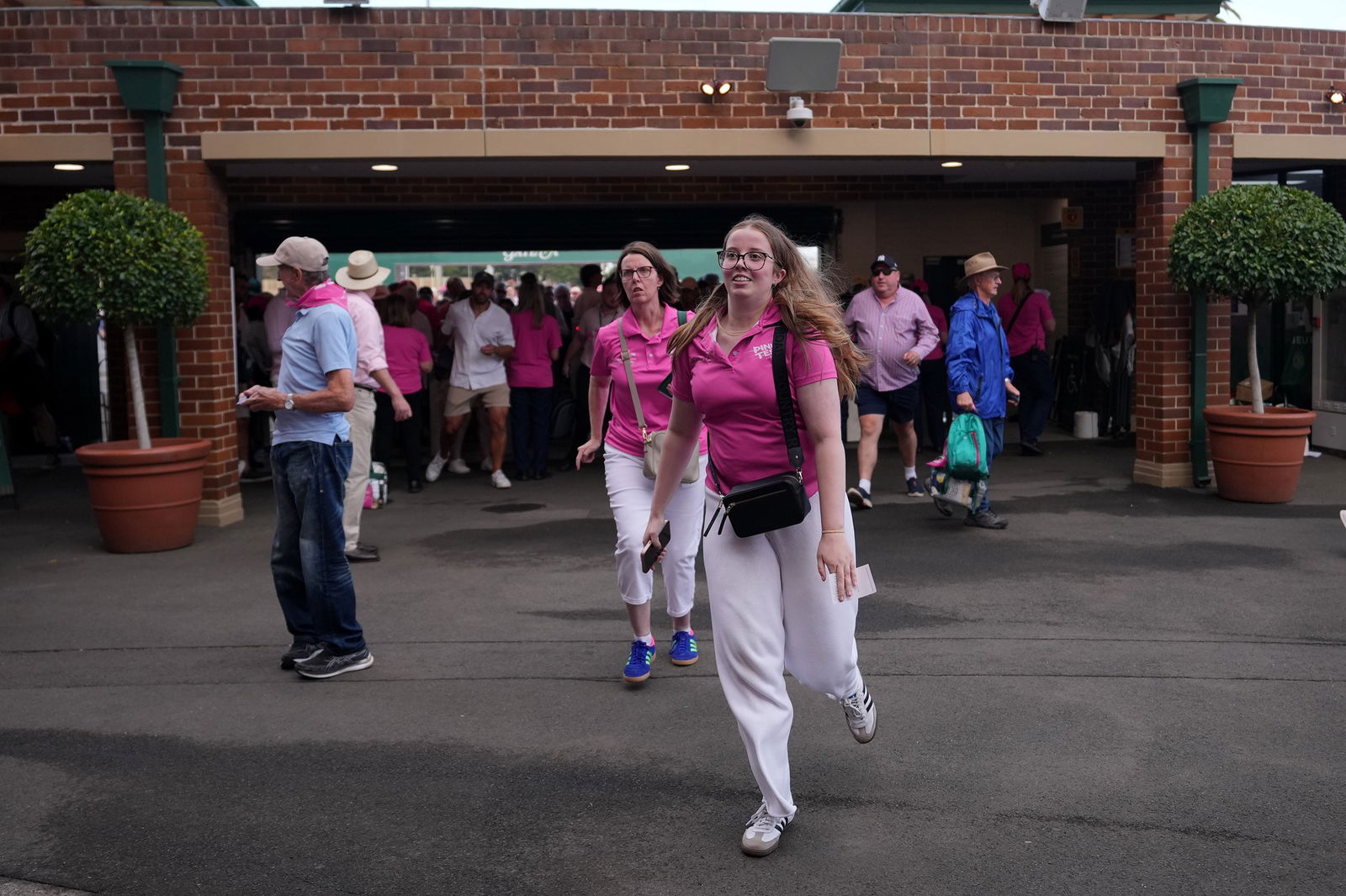 É um mar de salmão, magenta, rosa, chiclete e fúcsia no Moore Park enquanto o estádio começa a encher.