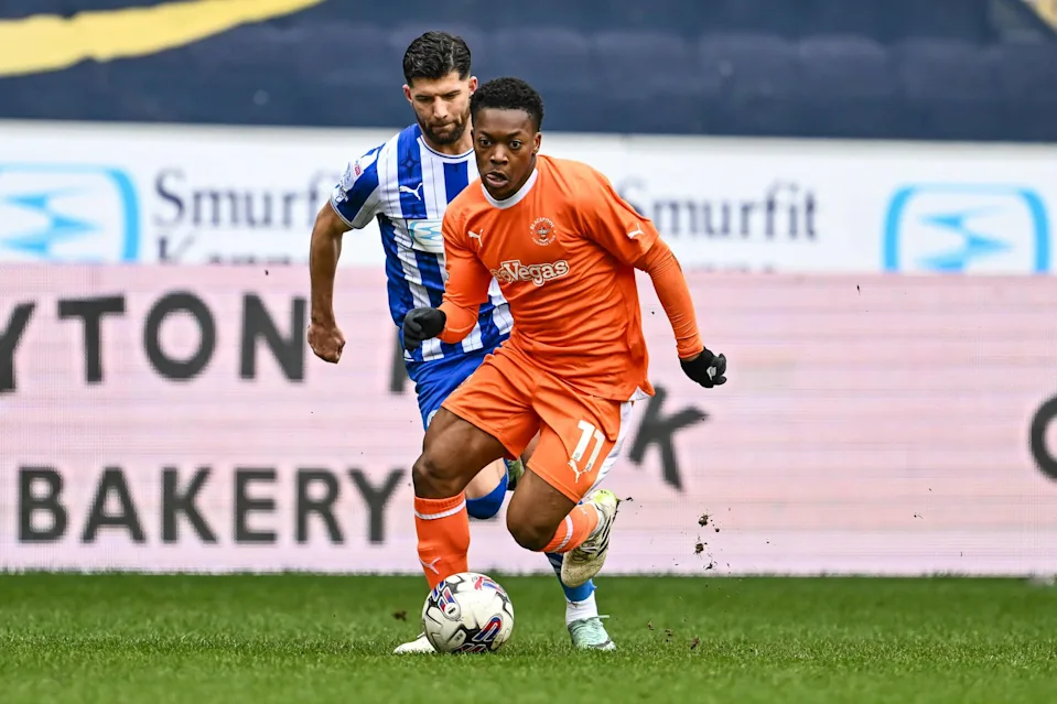 Sky Bet League 1 Wigan Athletic x Blackpool Karamoko Dembele de Blackpool faz uma pausa com a bola durante a partida Sky Bet League 1 Wigan Athletic x Blackpool no DW Stadium, Wigan, Reino Unido, 16 de março de 2024 Foto de Craig Thomas / News Images Direitos autorais: xCraigxThomas / NewsxImagesx