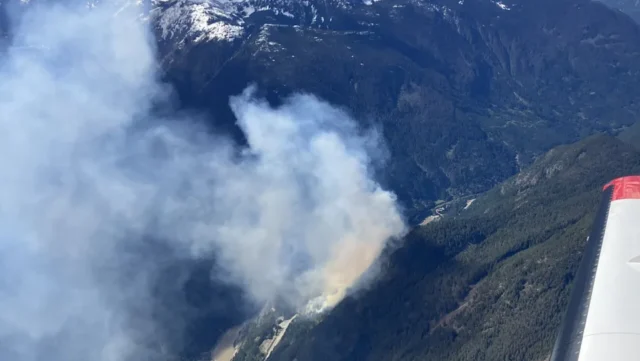 O Ferrabee Wildfire, a sudeste de Hell’s Gate, é visto em 23 de abril de 2026. (BC Wildfire Service)