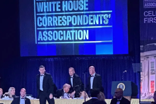 O vice-presidente JD Vance foi retirado da sala primeiro, enquanto os agentes inicialmente cobriram Trump no local antes de escoltá-lo e a primeira-dama Melania Trump para fora da sala. O presidente tropeçou brevemente ao sair do palco, antes de ser ajudado por sua equipe de segurança.