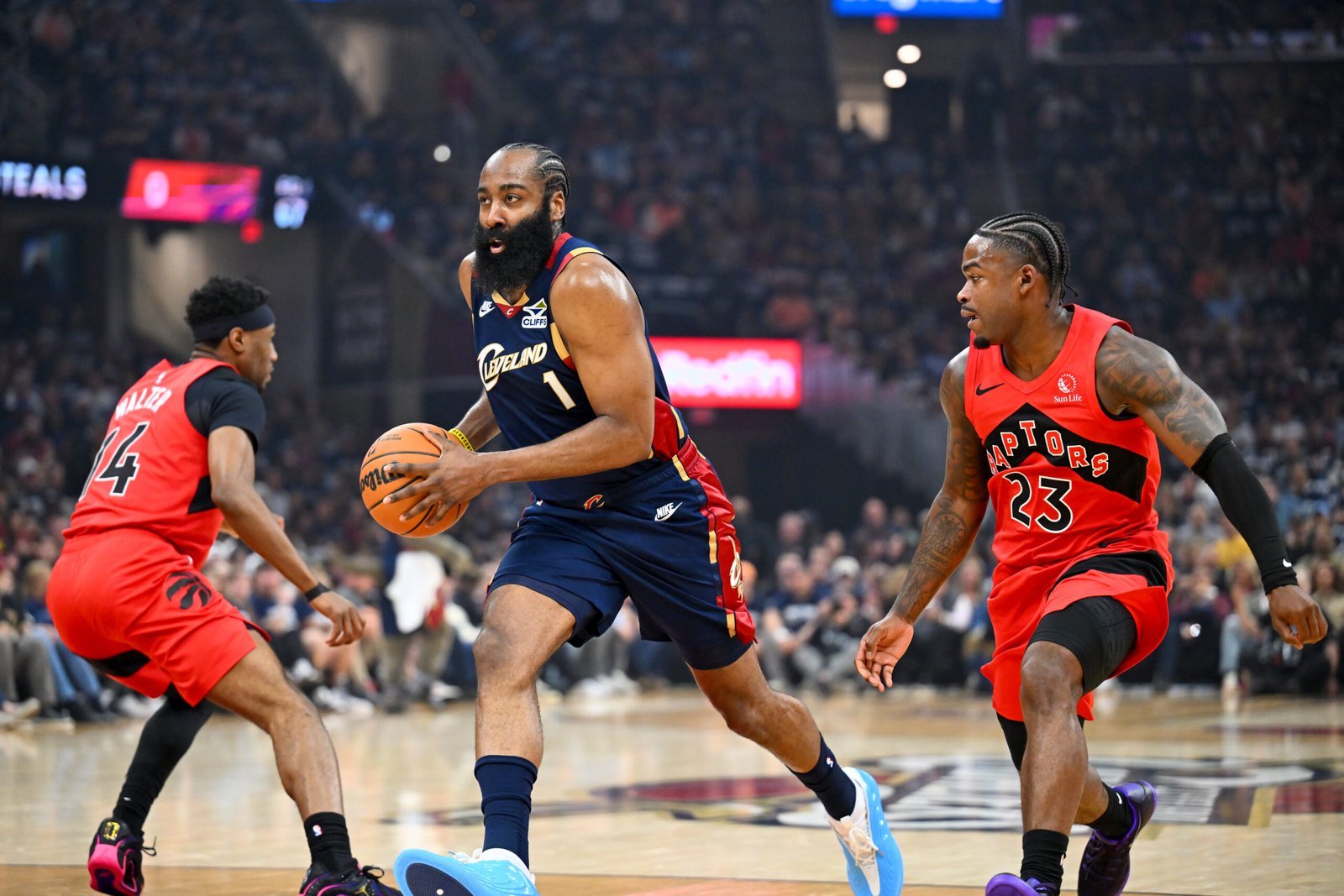 James Harden e Donovan Mitchell estão causando problemas para Toronto, que corre o risco de cair em um buraco de 0-2 contra o Cavs. Acompanhe a ação aqui!