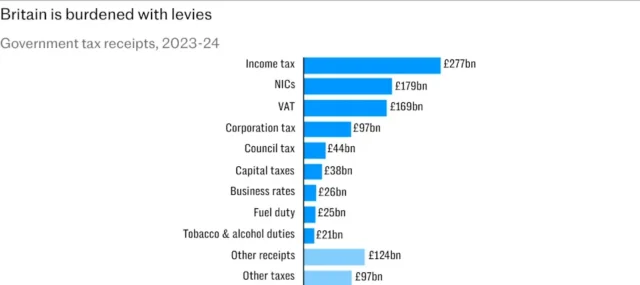Reeves também lançou ataques furtivos aos limites do imposto sobre o rendimento e da Segurança Social, congelando-os até 2031 e arrastando milhões para o pagamento de impostos mais elevados. Outros aumentos atingiram o imposto sobre ganhos de capital e as contribuições para pensões com sacrifício de salários.