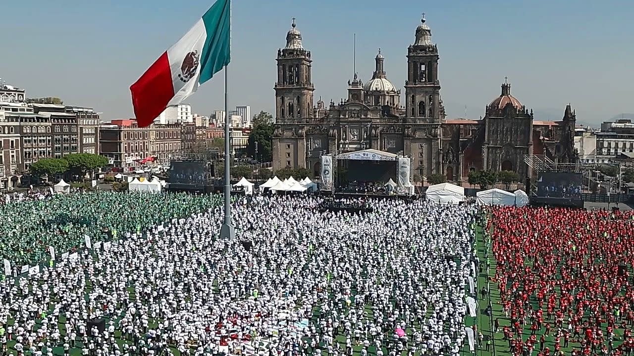 Milhares de residentes da Cidade do México reuniram-se na praça Zocalo para quebrar o Recorde Mundial do Guinness para a maior classe de futebol do mundo em 15 de março, quebrando o recorde anterior de 2025.