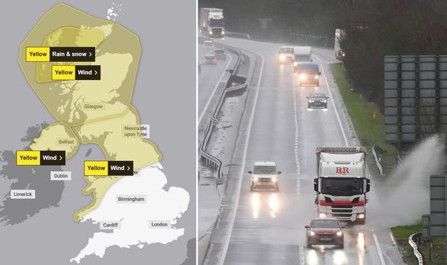 Quatro avisos meteorológicos amarelos do Met Office entrarão em vigor esta tarde: