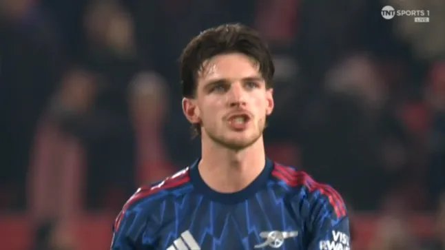 Declan Rice parecia furioso após o empate em 0 a 0 do Arsenal com o Nottingham Forest (TNT Sports)