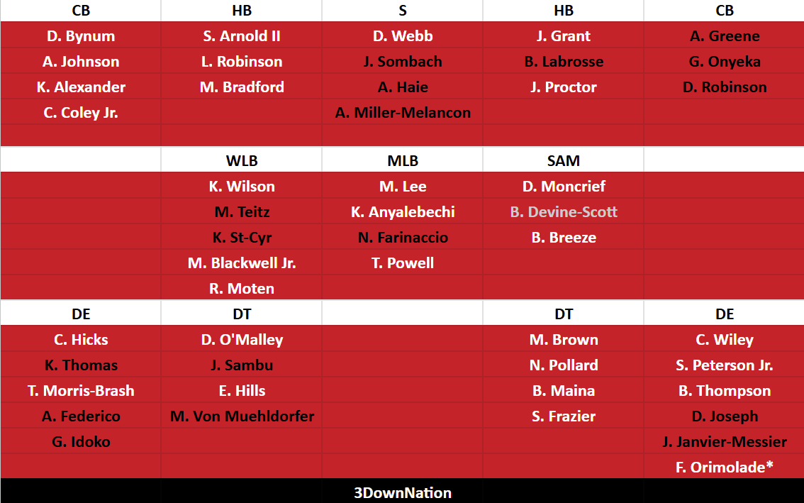 Substituir o linebacker do lado fraco Jacob Roberts, que partiu para Minnesota ao lado de Hutchings, deve ser consideravelmente mais fácil. O veterano Kyle Wilson, que teve um desempenho admirável depois de ingressar no time no meio da temporada passada, pode deslizar com Marquel Lee de volta saudável no meio. O produto caseiro Micah Teitz também oferece profundidade valiosa e uma opção de proporção quando necessário. Este grupo é acessível e tem alguns jovens intrigantes por trás dele, embora mais algumas opções canadenses possam ser um alvo no rascunho.