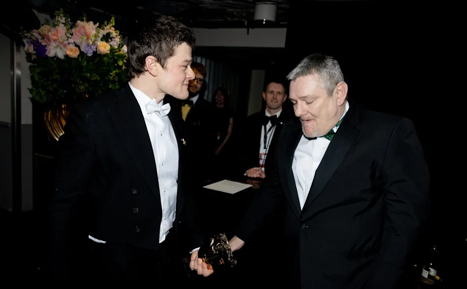 Aramayo e Davidson fotografados nos bastidores durante os Baftas – os participantes foram informados sobre a presença e condição de Davidson – Carlo Paloni/BAFTA via Getty Images