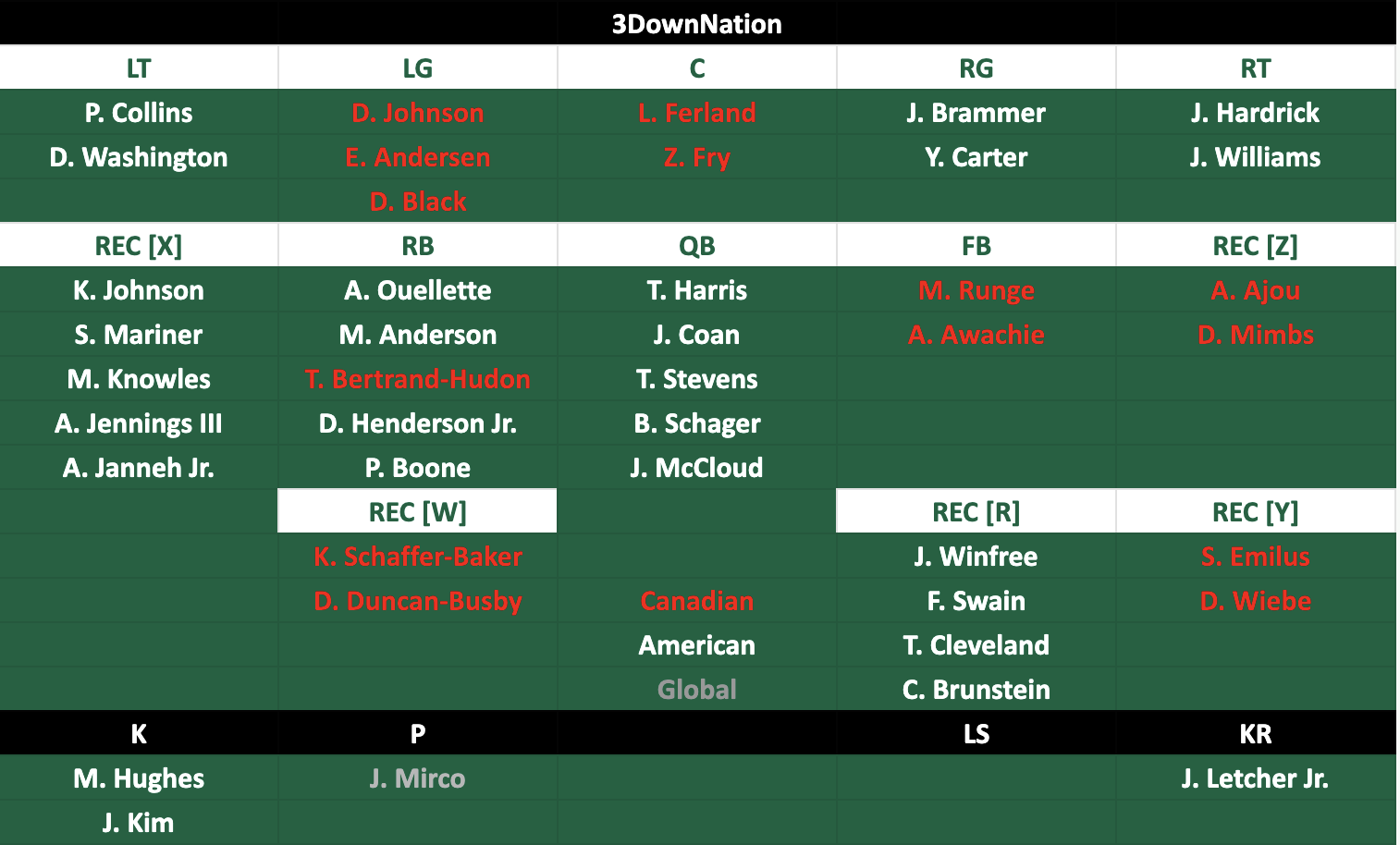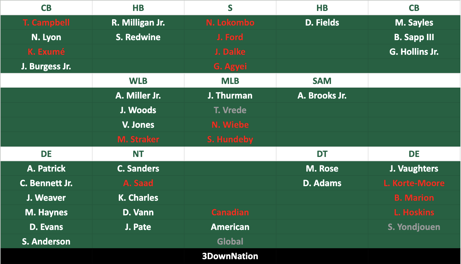 Os Verdes e Brancos adicionaram o especialista em retornos James Letcher Jr. na agência livre, junto com o veterano defensivo James Vaughters, o linebacker americano Josh Woods e o linebacker global Tyron Vrede. São 33 novos contratos, sem mencionar os acordos iniciais que os Riders finalizaram com escolhas anteriores de draft e novatos americanos.
