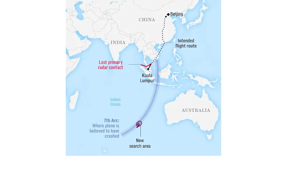 Minutos depois, o transponder do avião, que transmite sua localização, desligou. O radar militar mostrou o jato sobrevoando o Mar de Andamão, e dados de satélite sugeriram que ele continuou voando por horas, possivelmente até ficar sem combustível, antes de cair em uma seção remota do sul do Oceano Índico.