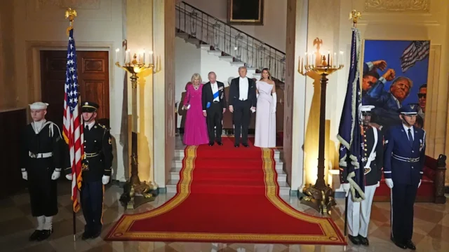 Durante seu discurso no jantar de Estado, Trump descreveu a história e o vínculo entre os EUA e o Reino Unido como “uma amizade diferente de qualquer outra na Terra”, além de elogiar o jogador de golfe Rory McIlory, que estava presente.