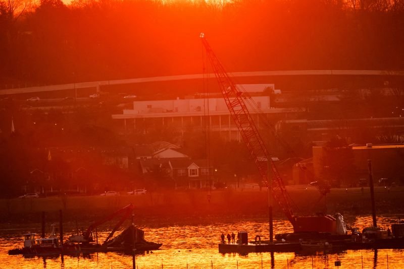 FOTO DE ARQUIVO: Uma vista mostra o Rio Potomac ao nascer do sol, após a colisão do voo 5342 da American Eagle e um helicóptero Black Hawk que caiu no Rio Potomac, perto do Aeroporto Nacional Ronald Reagan de Washington, em Arlington, Virgínia, EUA, 4 de fevereiro de 2025. REUTERS/Eduardo Munoz/Foto de arquivo
