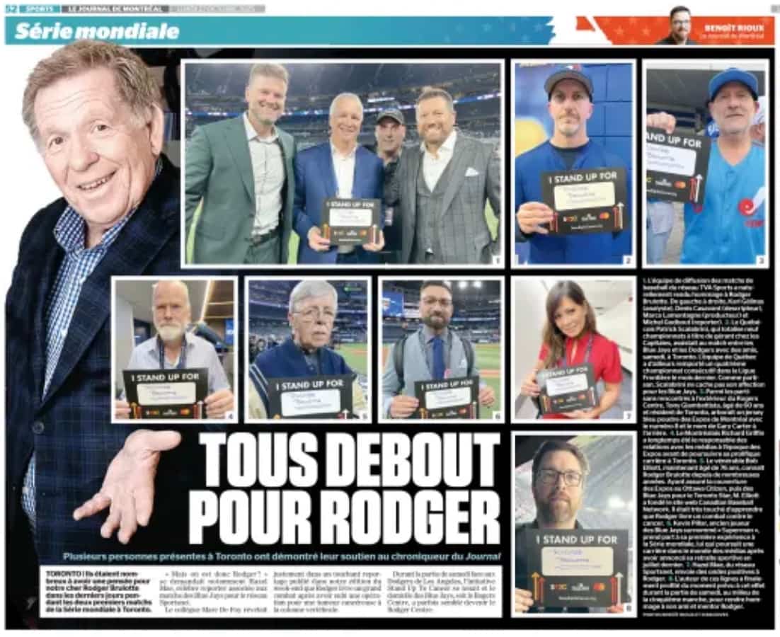 Le souvenir remoto précisément au lundi 27 octobre. Ce matin-là, já publiquei uma página em Le Diário intitulado «Tous debout pour Rodger Brulotte», em laquelle de nombreuses personnalités reconhecidos em Toronto, pendente da Série Mundial, posaient para encorajar nesta batalha contra o câncer. Ele terá o vieux cúmplice Denis Casavant, mais também Hazel Mae, Bob Elliott e Richard Griffin, entre outros. J’étais heureux d’avoir pu ainsi te toucher, mesmo se j’aurais souhaité le faire dans des circonstances diferentes.