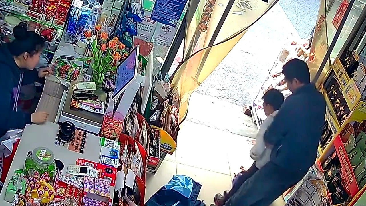 Em Hunan, China, em 11 de março de 2026, um funcionário de uma loja de conveniência executou rapidamente a manobra de Heimlich depois que um menino entrou correndo sufocado.