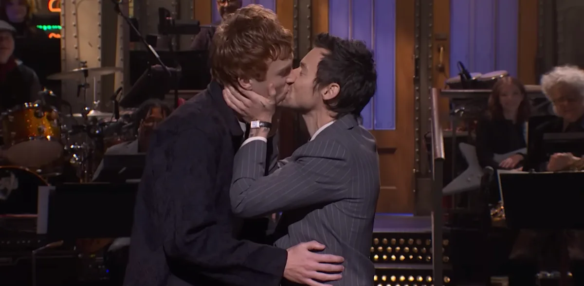 Ele deu um beijo nos rumores beijando SNL membro do elenco Ben Marshall nos lábios.