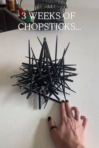 Depois de construir a Torre Eiffel com pauzinhos, Blando, que também é streamer do Twitch, passou a compartilhar vídeos de luminárias e vasos que ele fez com os pauzinhos de plástico preto.
