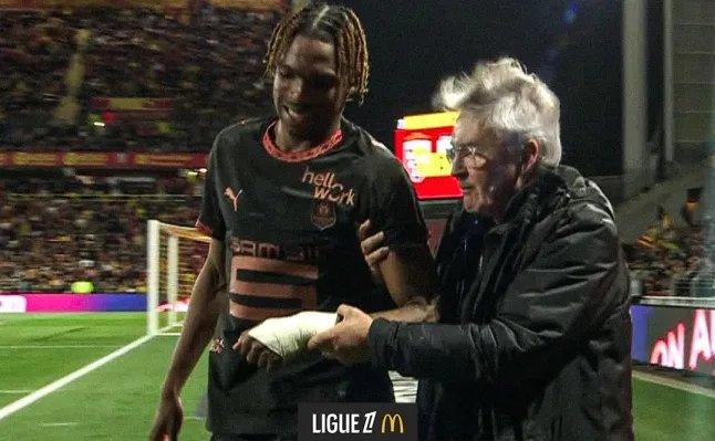 Jacquet parecia claramente com dor quando foi ajudado a descer o túnel por um membro da equipe de bastidores do Rennes.