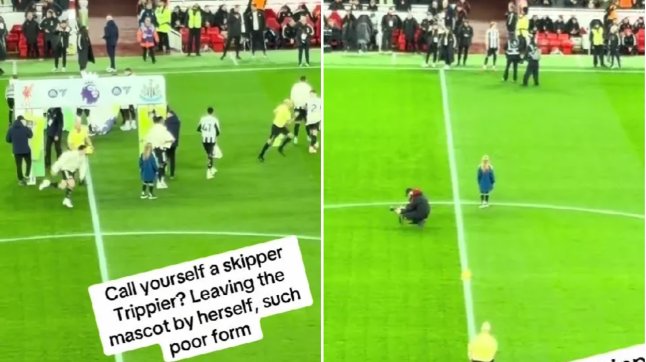 Mas depois que os dois times apertaram as mãos, Trippier e o resto dos jogadores do Newcastle deixaram a garota sozinha em campo por mais de um minuto enquanto tiravam as jaquetas de treino pré-jogo e as entregavam a um membro da equipe na linha lateral.