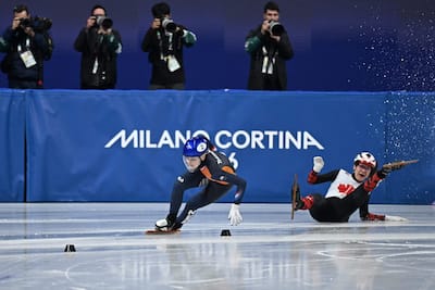 Courtney Sarault, reina do uniforme nos Jogos Olímpicos de Milão com suas quatro medalhas au cou, não foi rendida no final da corrida de 1500 metros, antes de cair mal na meia-final.
