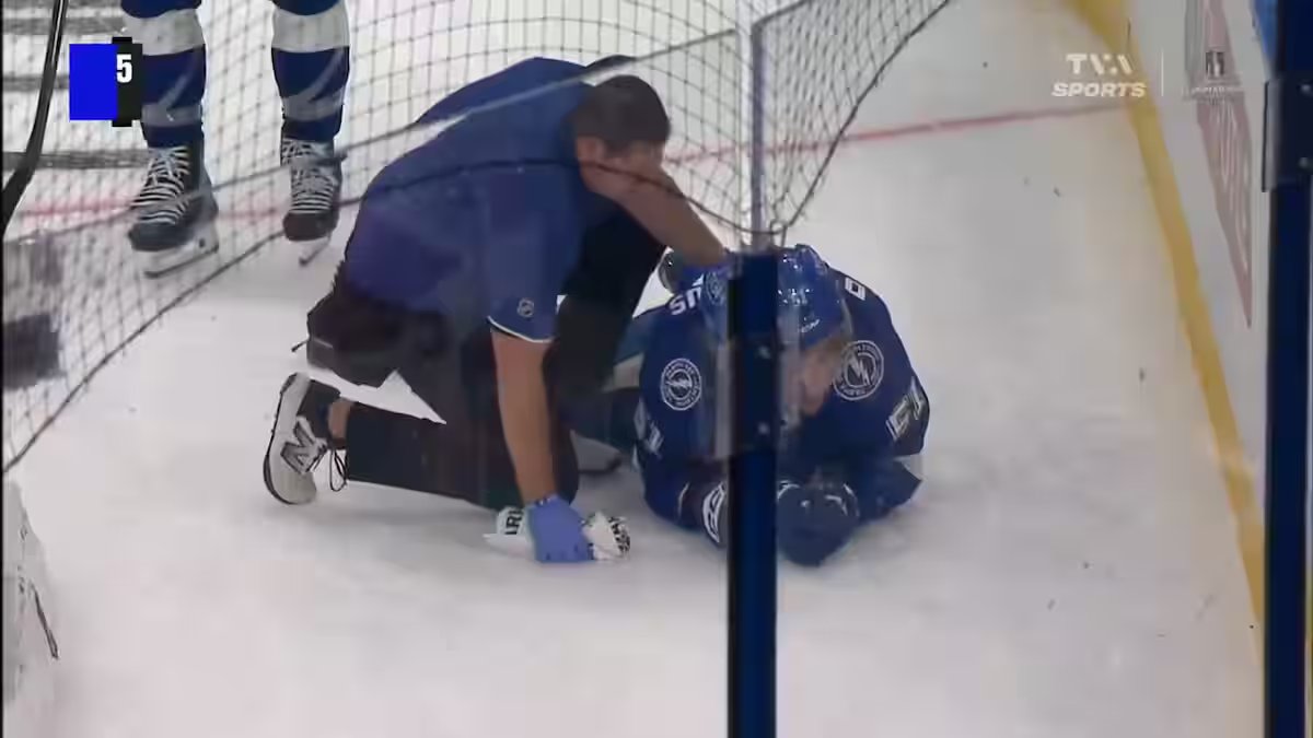 Este último foi fortemente apagado e você desistiu do vestiário depois de ter sido vítima do golpe distribuído no segundo período do primeiro afrontamento da série de primeiro tour entre as duas equipes, dimanche em Tampa.