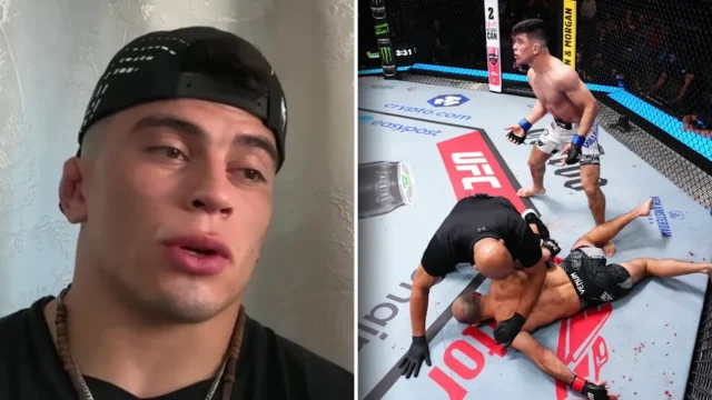 Kevin Vallejos quebra seu soco giratório nocauteando Giga Chikadze