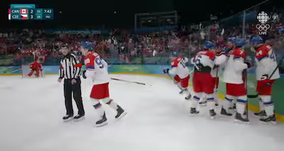 Na verdade, a Tchéquie evoluiu com seis patineres durante a parte maior da sequência que está no mené au but. Du tir bloqué de Thomas Harley à la ligne bleue tchèque jusqu’au mas de Palat lors d’une descente à trois contre deux, il y avait six patineurs tchèques sur la glace.