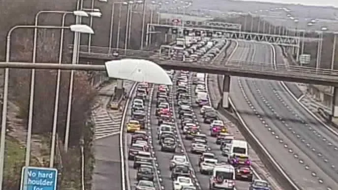 Houve longos atrasos na M25 perto de Brentwood, em Essex, após um acidente às 11h30 GMT no sábado. [National Highways]