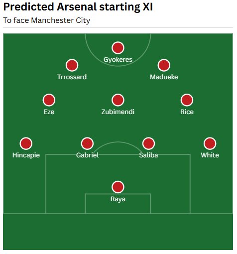 MAIS: Man City vs Arsenal: escalações previstas para hoje e notícias confirmadas da equipe