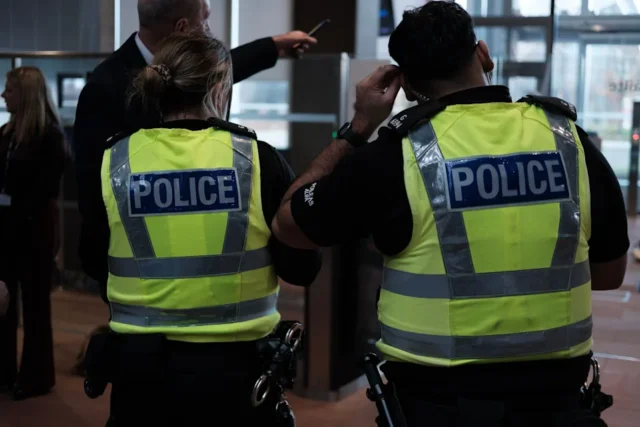 Dois policiais estiveram presentes, mas o grupo deixou o prédio depois de mais de uma hora e não parecia ter havido nenhuma prisão.
