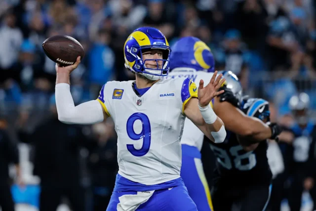 Stafford ficou entre os cinco primeiros de todos os tempos em campanhas vencedoras de jogos da NFL. Ele projetou seu mais recente na estrada no Bank of America Stadium com a temporada dos Rams em jogo.