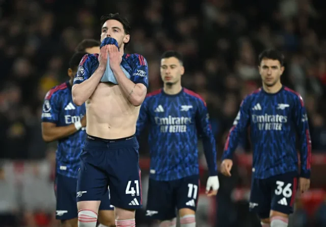 “Não conseguimos isso, então a palavra é decepção. Não sofremos nada, nenhum chute de novo e geramos quatro grandes chances com Martinelli com um gol aberto, com Declan Rice, Merino e depois a cabeçada de Bukayo Saka com uma defesa inacreditável, e ainda por cima, um pênalti muito claro também que não foi marcado.