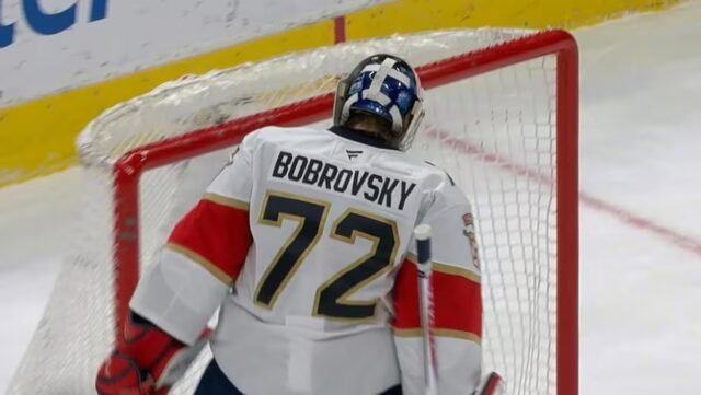 Este é o pauvre Sergei Bobrovsky que está descansado antes dos mas para os novos furacões. Le gardien russe a repoussé 26 rondelles.