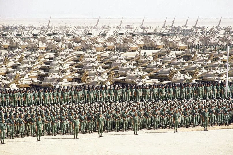 ARQUIVO: Desfile militar egípcio para comemorar o 5º aniversário da guerra de outubro de 1973 com Israel, 6 de outubro de 1978 – Foto AP