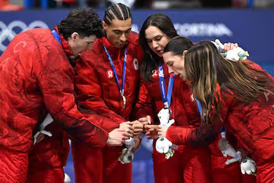 Dandjinou, Boutin, Courtney Sarault e Félix Roussel podem não ter coberto um primeiro caso. Ce sont eux qui ont foulé la glace pour le Canada, en finale.