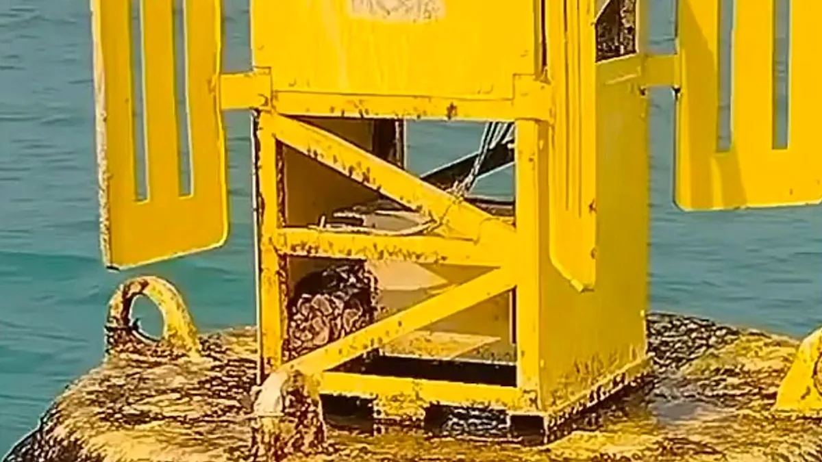 Este é o momento bizarro em que um grupo de pescadores em um barco na costa de Pattaya, na Tailândia, em 16 de fevereiro, encontra uma píton reticulada escondida dentro de uma bóia no meio do oceano. As pítons são capazes de nadar, mas esta sofria de fadiga e provavelmente de fome.