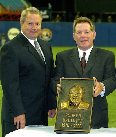 Rodger Brulotte foi introduzido no Temple da renomada Expos no mesmo tempo que Ron Piché, Bob Bailey e Dennis Martinez. A pose com a placa ao lado do presidente da equipe de 2002 a 2004, Tony Tavares.