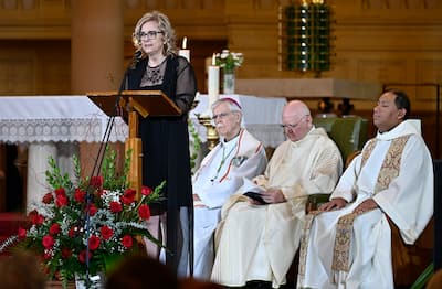 Depois de remercié les organizadores e da assistência da cerimônia, celle-ci está no final da vida de son époux.