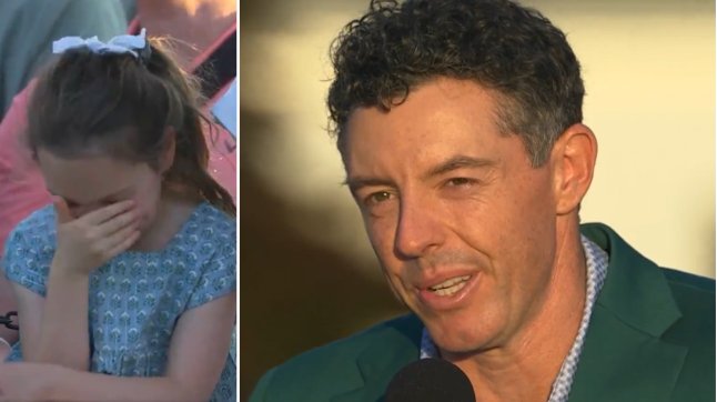 A filha de Rory McIlroy, Poppy, lutou para esconder seu constrangimento após o discurso de vitória arrepiante de seu pai campeão do Masters que se seguiu ao seu último triunfo em Augusta.