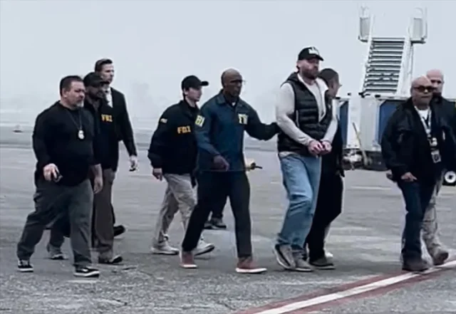 FBI – FOTO: Ryan Wedding é visto sob custódia ao desembarcar em Ontário, Califórnia, em 23 de janeiro de 2026.
