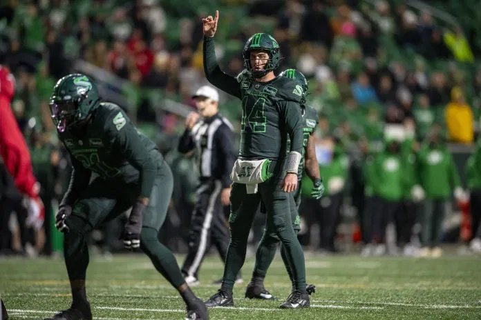 Os Saskatchewan Roughriders terminaram em primeiro lugar na classificação da Divisão Oeste em 2025 com um recorde de 12-6, terminando em primeiro na Divisão Oeste pela primeira vez desde 2019. A equipe derrotou o Montreal Alouettes na 112ª Grey Cup em Winnipeg, marcando o primeiro campeonato da equipe em 12 anos. Trevor Harris foi 11-5 como titular, arremessando 4.549 jardas, 24 touchdowns e 11 interceptações.