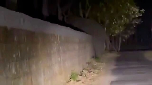 Em Uttarakhand, na Índia, na segunda-feira, 23 de março de 2026, um elefante asiático foi capturado pela câmera atravessando habilmente um muro perimetral na área de Lansdowne-Kotdwar.