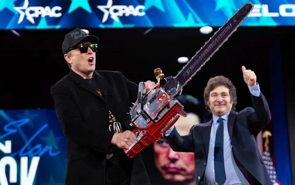 O CPAC do ano passado foi bem mais animado, com Elon Musk se divertindo com uma motosserra – Jose Luis Magana/AP