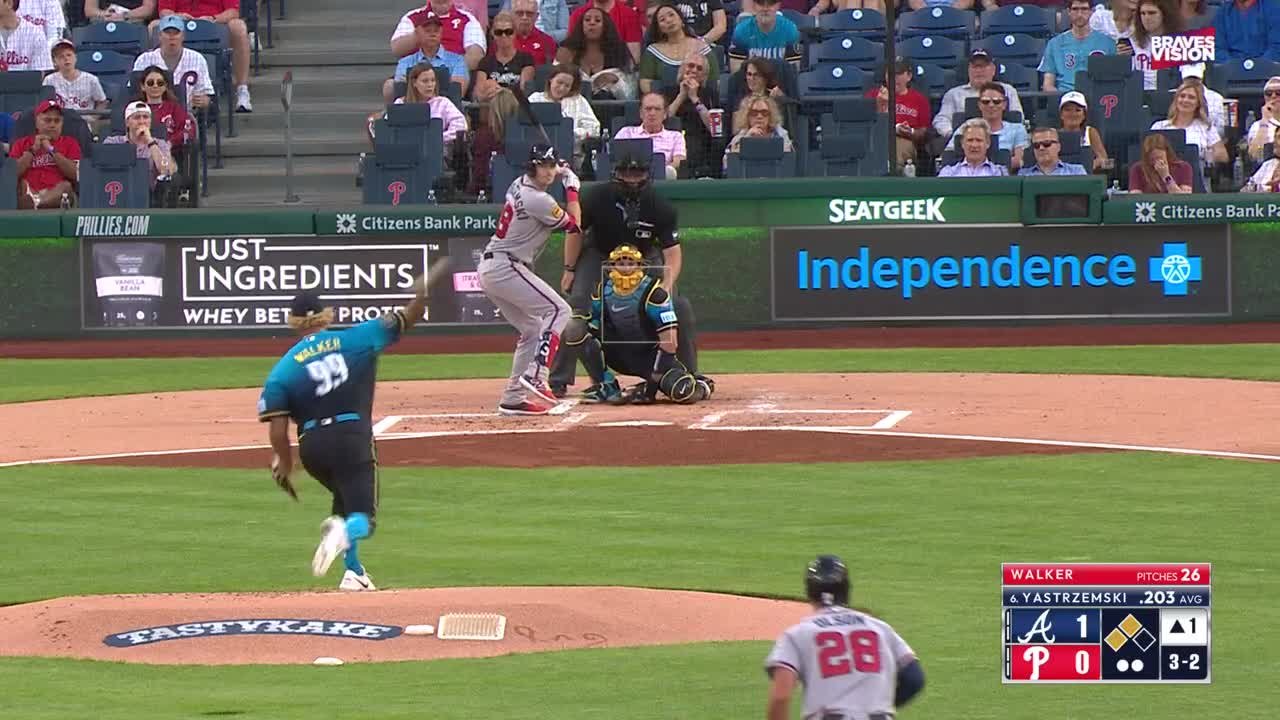 Mike Yastrzemski acerta um single no campo, marcando Drake Baldwin para ampliar a vantagem do Braves para 2-0