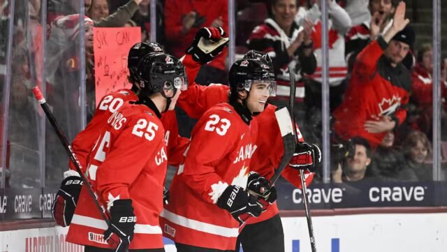 Então a vantagem numérica canadense está em marcha no final do período. Esta é uma ótima ideia de ser indisciplinado contra o Canadá neste torneio. Com Michael Hage, Gavin McKenna, Brady Martin e Zayne Parekh, em um direito à uma doce sinfonia de passes na paleta. É um jogo da velha sublime entre Hage, McKenna e Martin que criou o jogo de 5 a 0.