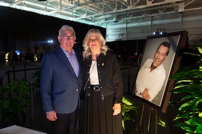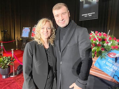 Lyne Robitaille (à direita), antiga presidente e editora de Jornal de Montrealfoi muito emue pelos décès de Rodger Brulotte, aproveitando a passagem de suas qualidades humanas. Na voit acompanhada pelo filho conjunto, Alain Bullett.