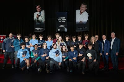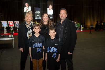 Dominic Simard, presidente dos Duques de Longueuil, um ardente representante desta organização da Liga de Beisebol de Elite Júnior de Quebec. Ele é acompanhado por sua mãe Diane Simard, sua conjunto Cynthia Lapointe e seus filhos Samuel, 9 anos, e Félix, 7 anos. Os Duques são os campeões das três últimas temporadas.